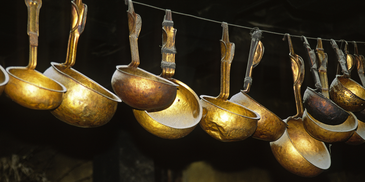 在空间形象上,秉承“往事重现”的设计思路,店面使用流媒呈现云南工艺品的精美多样;在橱窗中,平面与立体相结合,人物动作以漫画的形式表现,锻造铜器的工具古朴生动,再现云南斑铜制作过程画面,营造“千锤百炼,匠人手艺”的历史文化韵味。